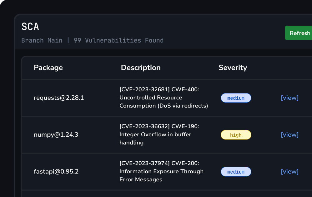 We don’t store your code, ever. Everything runs in memory and stays within your environment.