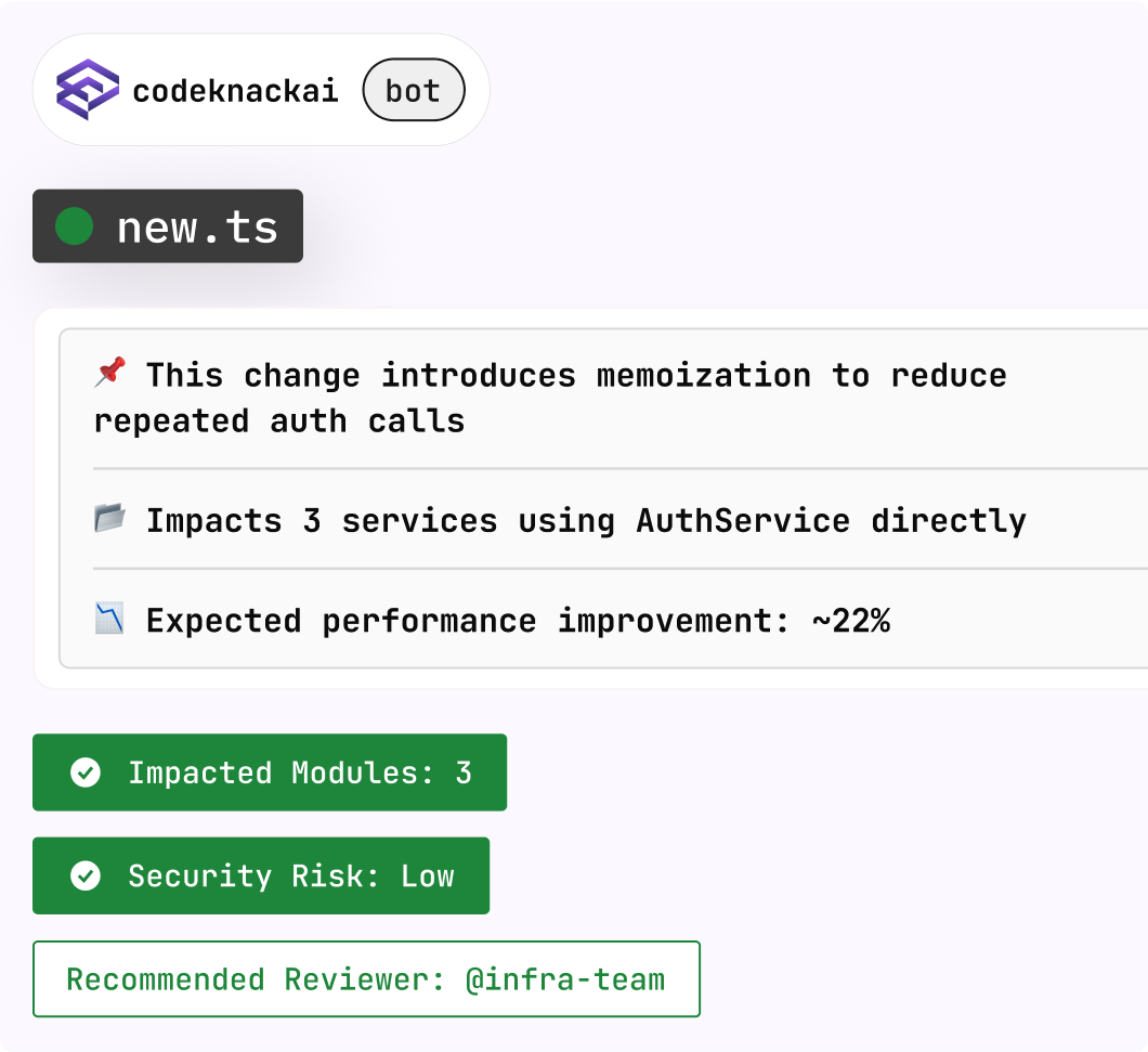 Every time you enable a review, CodeKnack automatically builds a code graph of your repository.